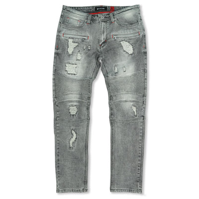 M1786 Makobi Prado Biker Jeans with Rip & Repair - Gray
