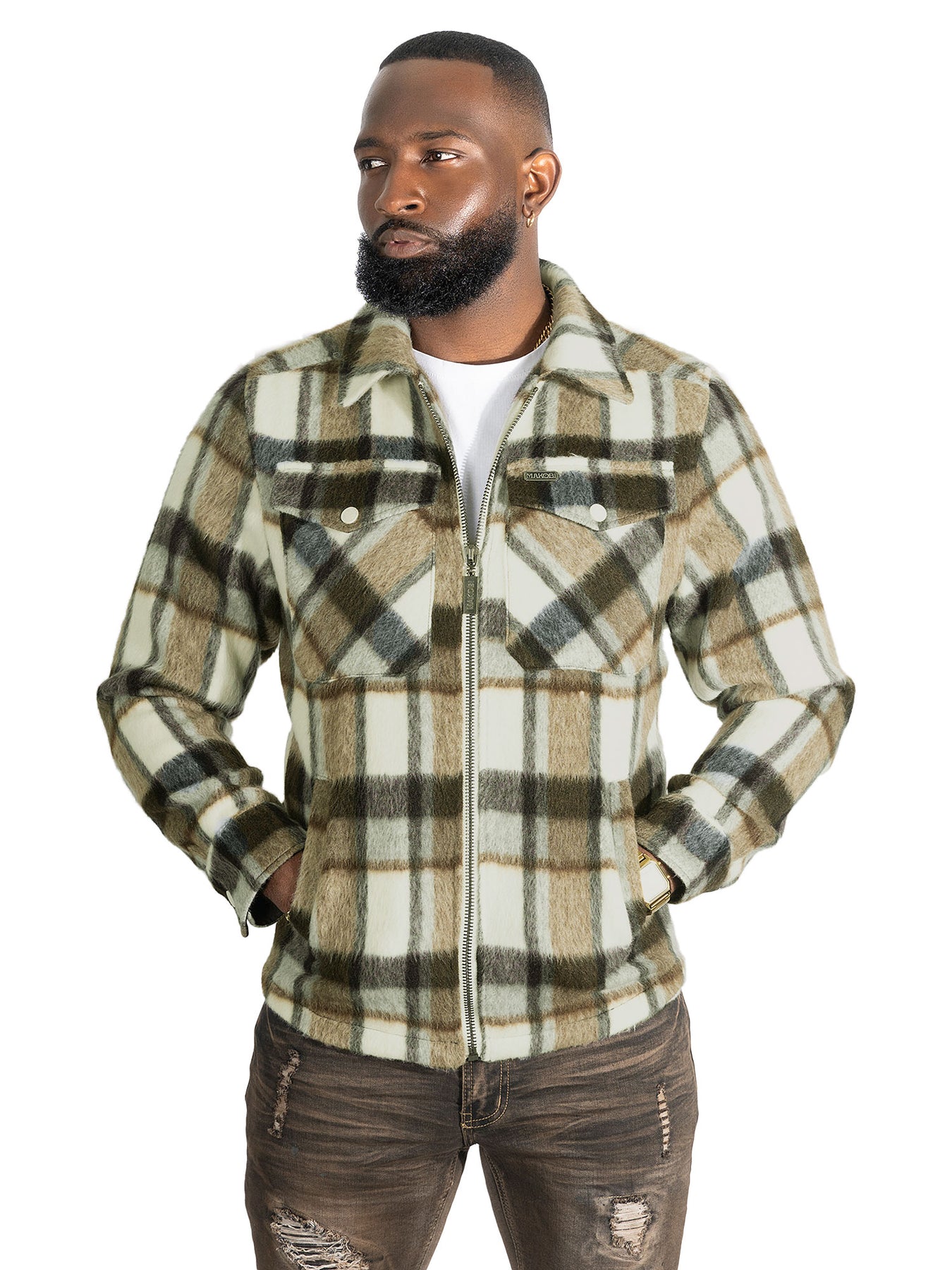 The M1058 Gabana Wool Shacket 2026 blends the warmth of a jacket with the versatility of a shirt, making it an ideal layering piece for cooler seasons. Crafted from a soft, brushed wool-blend fabric, it features a classic plaid pattern with a rich, textured finish. Designed with a full front zipper, structured collar, and dual flap chest pockets, this shacket delivers both style and functionality. The relaxed yet tailored fit makes it easy to wear over tees, knits, or hoodies, offering effortless comfort and timeless appeal for everyday wear.