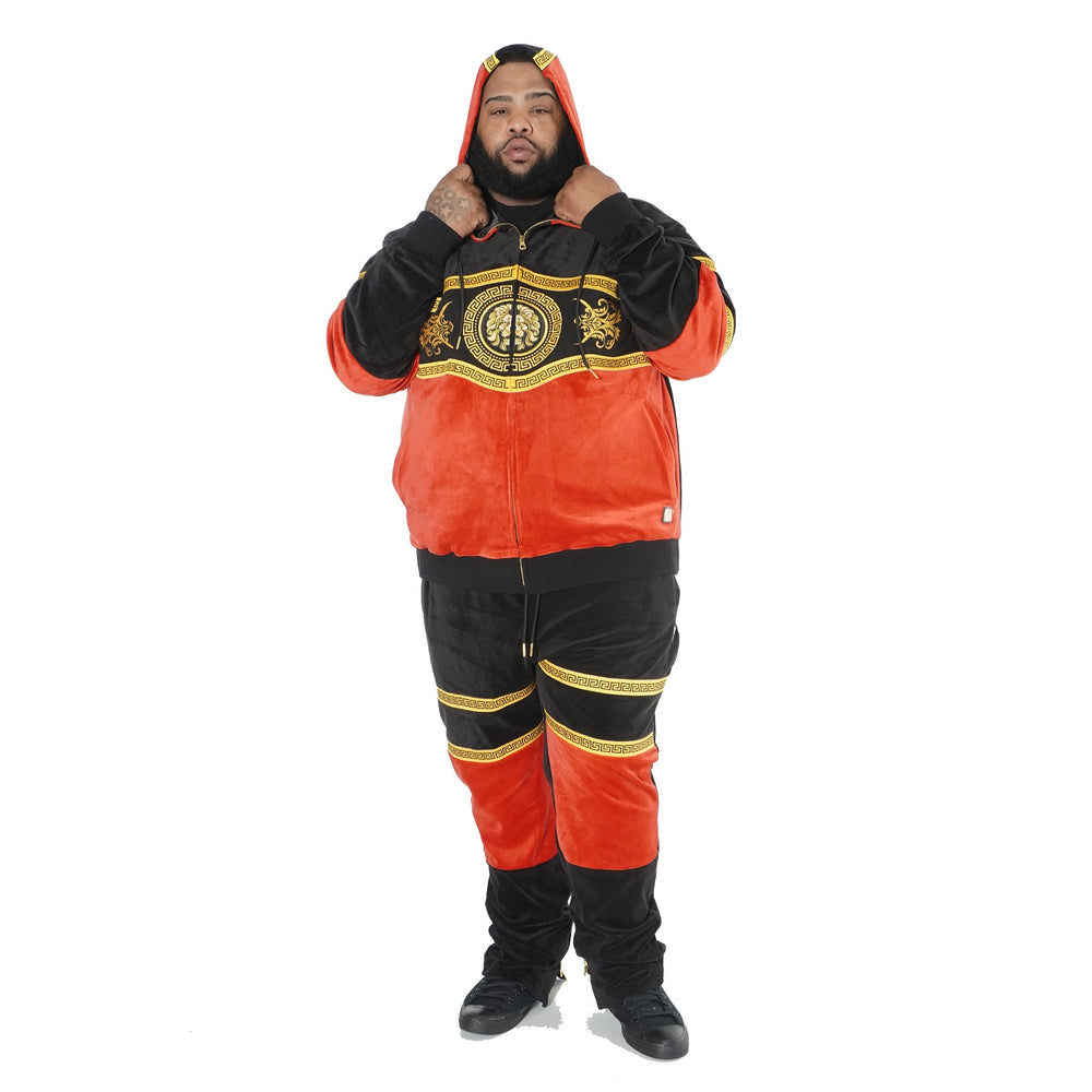 M4600 Greek Velour Set - Black/Red