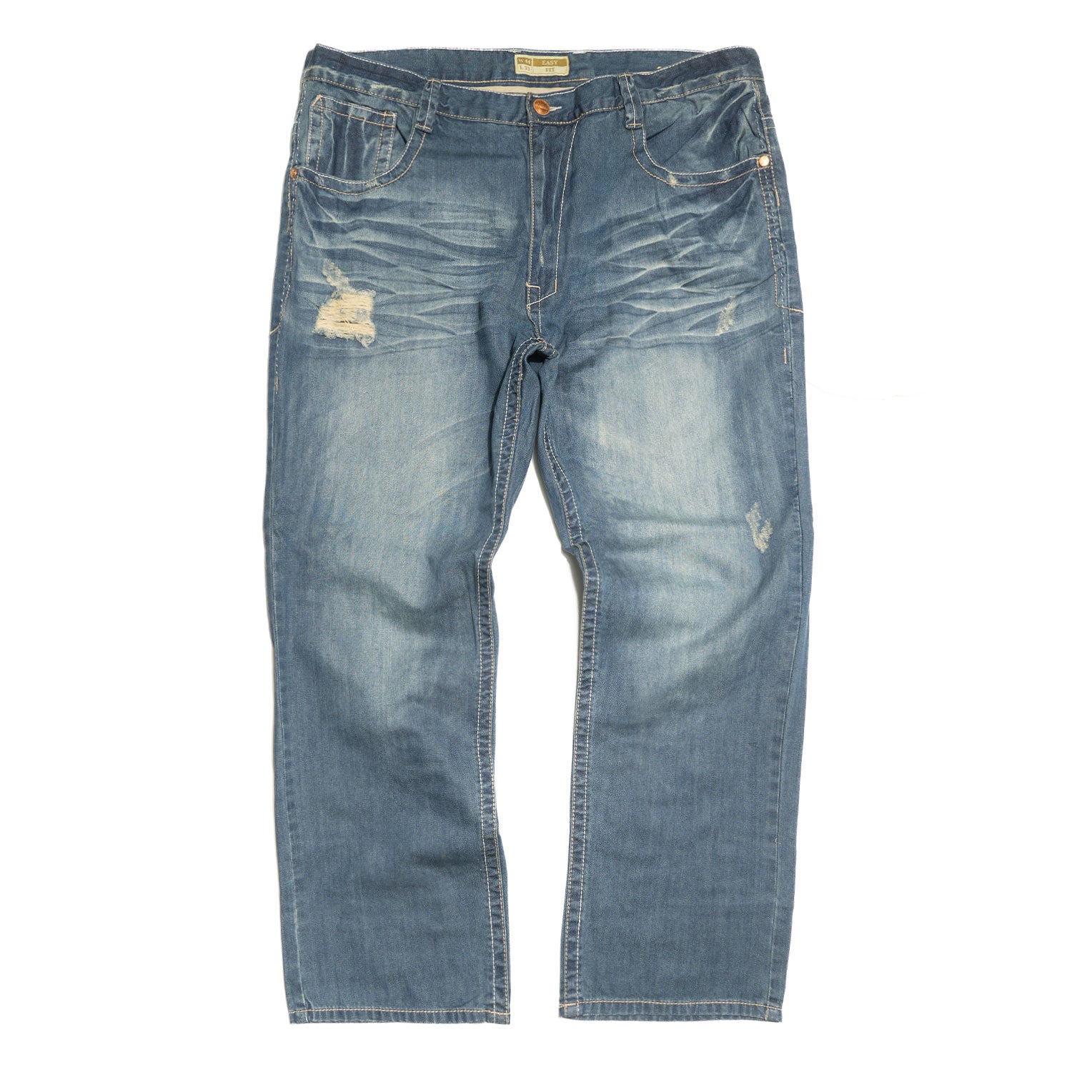 Distressed rip-and-repair details add just the right amount of edge, giving the denim a modern urban vibe without going overboard. The straight-leg cut offers a relaxed yet clean silhouette, making it easy to pair with tees, hoodies, or layered streetwear fits.