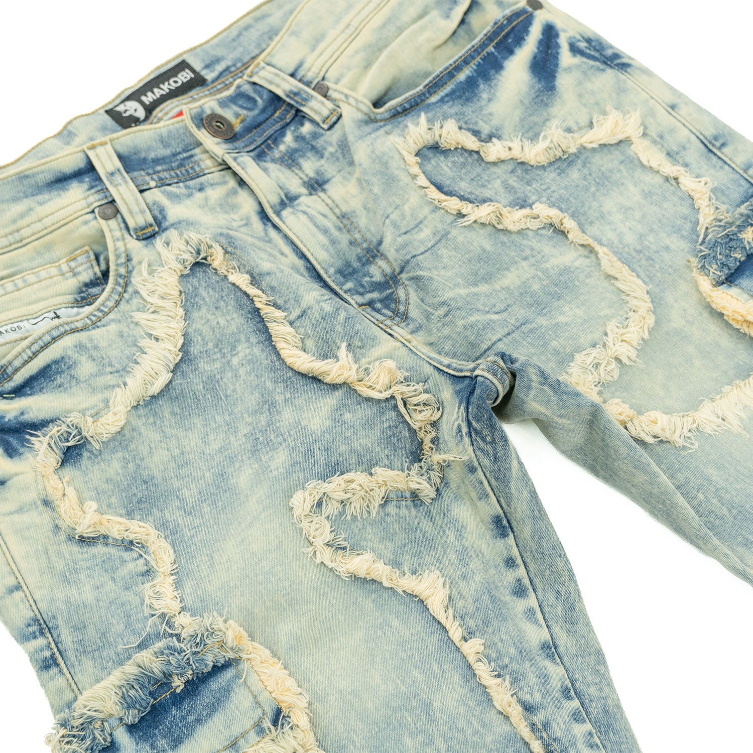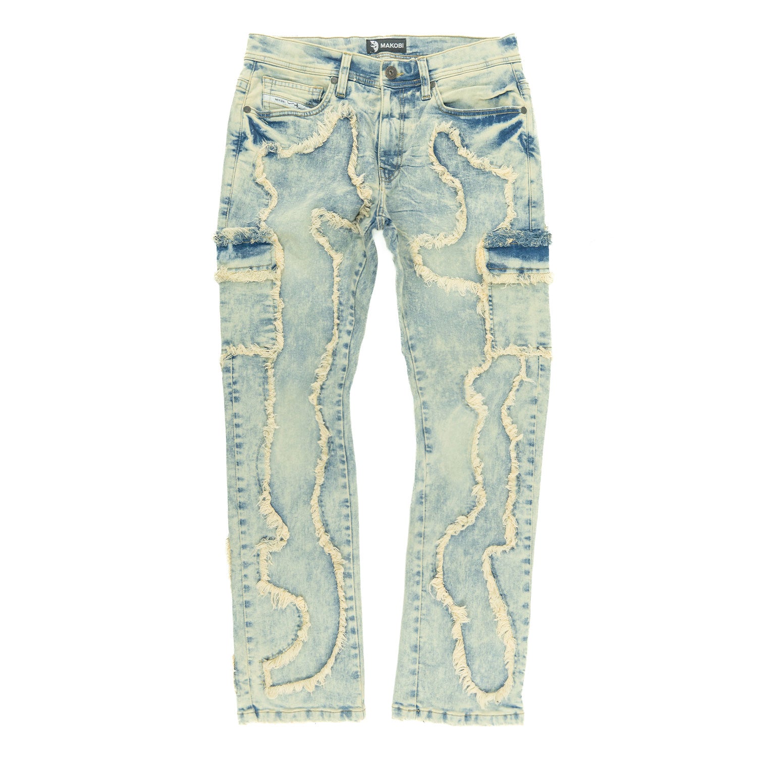 The Makobi M1977 Massino Jeans combine daring streetwear aesthetics with modern cargo denim craftsmanship. Designed with standout frayed seam detailing and a rugged wash, these jeans bring an edgy, fashion-forward look that elevates any casual outfit.